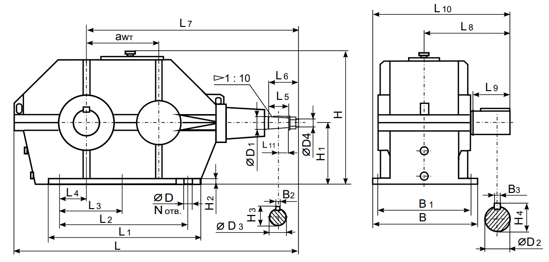 Коническо-цилиндрические редукторы КЦ1-200 (250, 300)